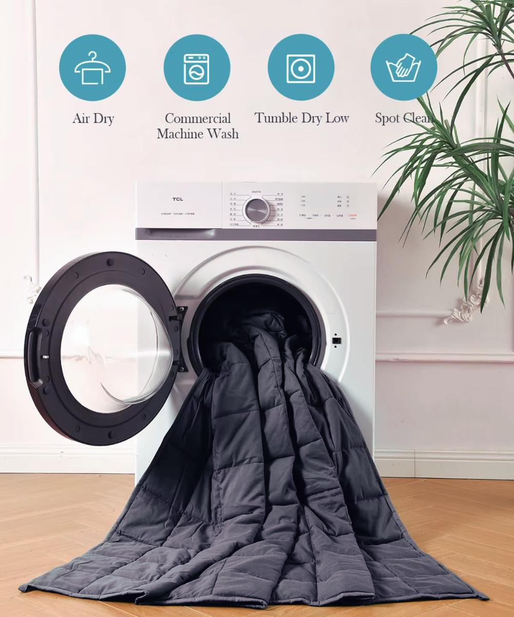 Designed for real life. The IceWeave Weighted Cooling Blanket is made to handle it all. Spot Clean, commercial machine wash, tumble dry, or air dry. Durable stitching and colorfast fabrics keep it looking and feeling new after every wash.